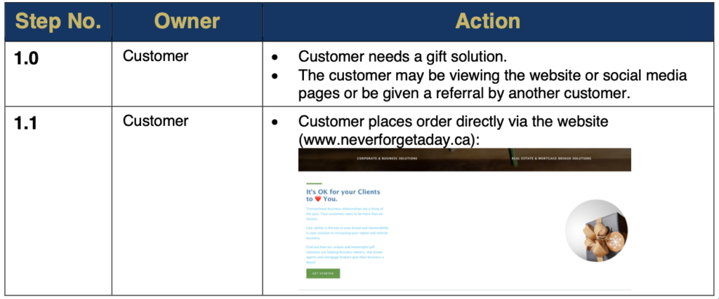 This is where a procedure document (known as level 4 process) comes into play. A procedure document will include the necessary detail (e.g. buttons to click, switches to turn on, forms to fill out and even screenshots or onsite images) for a user to accurately execute the steps in a process.
